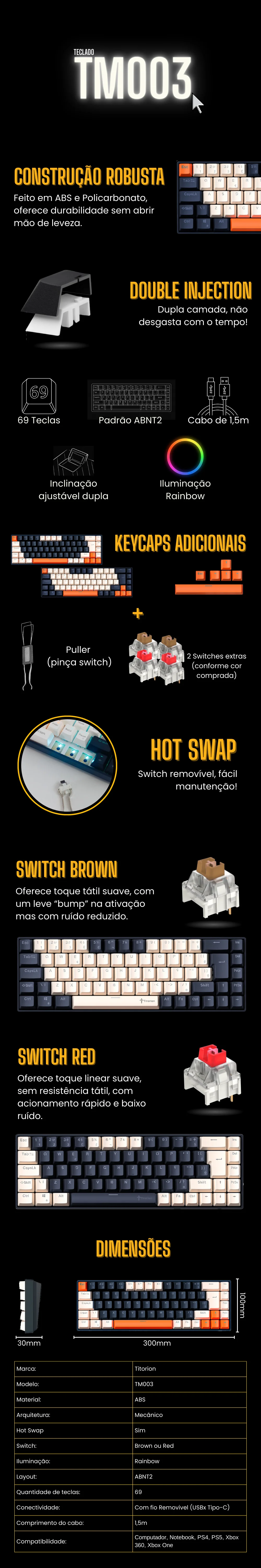 Teclado Mecânico Gamer 60% Hot Swap Switch Brow Red Marron Vermelho ABNT2 PC US